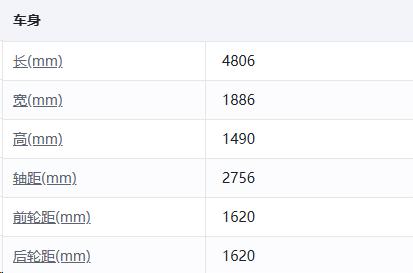4806mm/1886mm/1490mm,轴距 2756mm。