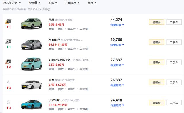 如今每月销量,仍稳稳排在新能源汽车第一。